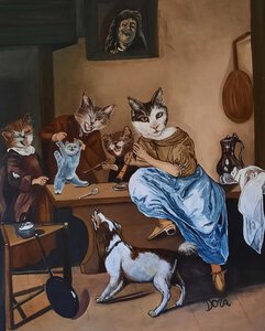 2021Met een knipoog naar Jan Steen. Kinderen leren een poes dansen.